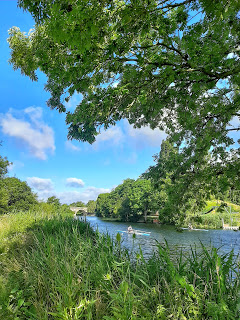 Anyway continue along the path to the left at the top of the steps and follow for a short distance the trail of the old railway line until you reach some more steps going back down. This brought us out to a lovely pathway to walk along the river Stour. Watching the folks in their row boats fighting against the wind can be quite entertaining for a short while.
